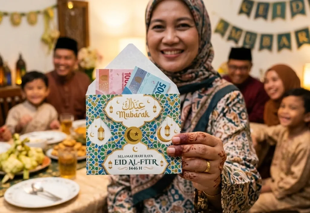 Tambahkan dekorasi seperti stiker Lebaran, pita kecil, atau tulisan tangan seperti “Selamat Idulfitri”, “THR untukmu”, atau nama penerima.